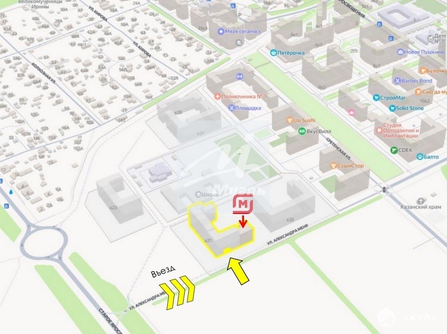 - Помещение на въезде в ЖК, в корпусе рядом с автобусной остановкой, магазинами.
