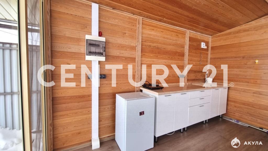 Жилой дом 80 кв. м (кадастровый номер: ( ) с застекленной верандой. Дом каркасный, использовались качественные материалы. Отделан с наружи и внутри лиственницей. Фундамент ленточный. Санузел совмещенный. На кухне гарнитур со встроенной техникой. Кварцвиниловый пол во всем доме. Отопление в доме электрическое. Дом готовый для круглогодичного проживания. На улице дополнительный уличный санузел со всеми удобствами.