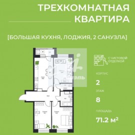 Татьяна. Отличное предложение! Предлагается Вашему вниманию евро-трехкомнатная квартира в ЖК "Новое Пушкино". В квартире выполнен качественный ремонт от застройщика. Планировка: Изолированные комнаты (13, 2 и 11, 7 м2), кухня-гостиная (18, 1 м2), 2 совмещенных санузла, просторный...